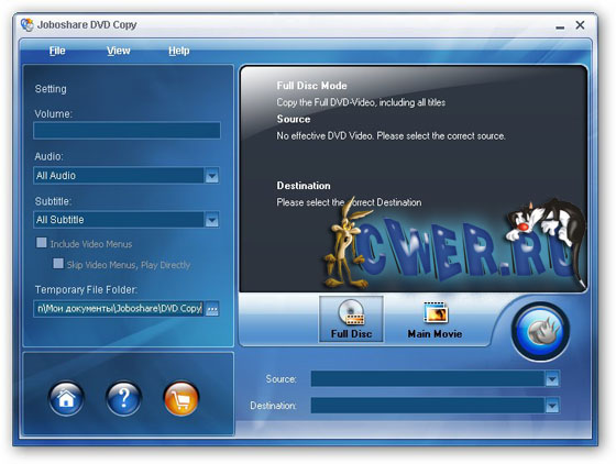 Joboshare DVD Copy - программа для быстрого клонирования и создания резервных копий ваших DVD. Поддерживает точное копирование DVD 1:1, а также копирование DVD с любым региональным кодом. Может копировать DVD в ISO-файл или папку DVD на жестком диске и наоборот, записывать их на DVD. Способна сжимать DVD-9 (двухслойный DVD) до размеров обычного DVD-5 диска. Позволяет удалить ненужные DVD меню, любые субтитры, звуковые дорожки и копировать только фильм.