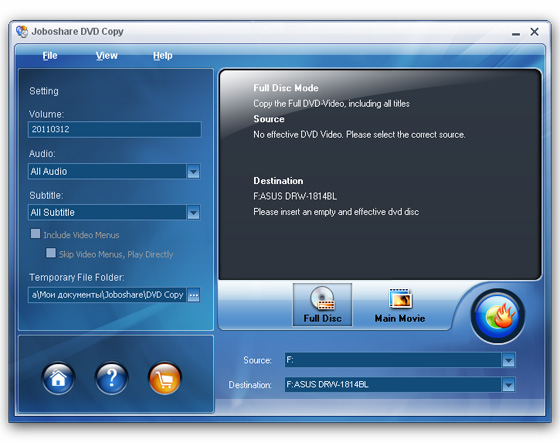 Joboshare DVD Copy является стабильной, быстрой и простой программой для копирования DVD, которая может скопировать DVD фильм на DVD в соотношении 1:1, а также сжать DVD-9 до размеров DVD-5 диска с высоким качеством DVD копии. С этой программой для копирования DVD, вы можете легко получить ваши DVD копии которые останутся на 100% такими же, как и оригинальные фильмы DVD.