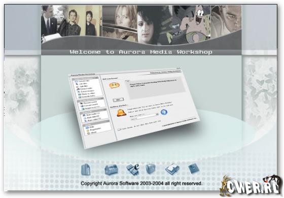 Aurora Media Workshop является программой, включающий в себя полный спектр средств для работы с видео и аудио файлами. Аудио и видеo конвертер, нарезка и соединение треков, граббер аудио CD, извлечение аудио из видео файлов, прожиг CD, создание видео CD из набора фотографий с множеством эффектов перехода, извлечение картинок (фреймов) из видео файлов, граббер DVD (VOB, DAT) в видео форматы, а аудио в MP3, WMA, WAV форматы, поддержка: AVI, MPEG1, MPEG2, ASF, WMV, VOB, DAT, DivX, XviD, MP3, WMA, WAV, OGG и других форматов.