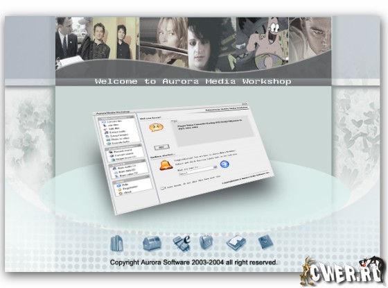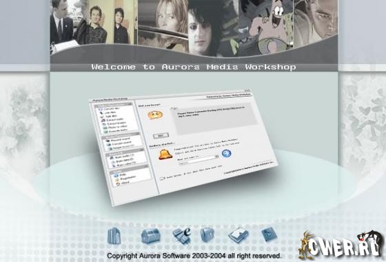 Aurora Media Workshop является программой, включающий в себя полный спектр средств для работы с видео и аудио файлами. Аудио и видеo конвертер, нарезка и соединение треков, граббер аудио CD, извлечение аудио из видео файлов, прожиг CD, создание видео CD из набора фотографий с множеством эффектов перехода, извлечение картинок (фреймов) из видео файлов, граббер DVD (VOB, DAT) в видео форматы, а аудио в MP3, WMA, WAV форматы, поддержка: AVI, MPEG1, MPEG2, ASF, WMV, VOB, DAT, DivX, XviD, MP3, WMA, WAV, OGG и других форматов. Короче целый мультимедийный комбайн!!! Русификатор в архиве.