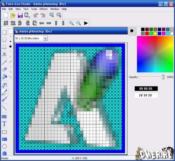 Falco Icon Studio - графический редактор для создания иконок. Умеет загружать иконки из DLL/EXE, BMP, GIF, PNG, JPG, ICO, CUR и ANI файлов. Результат сохраняет в JPG, GIF, PNG, BMP, ICO, CUR, ANI форматы. Также из особенностей этой программы: безлимитные UNDO/REDO, множественное копирование во многих окнах, вставка из разных редакторов, добавка иконок в различных форматах, поддержка 32-разрядных PNG и BMP, включая поддержку прозрачности и многое другое. В программу включены эффекты и графические настройки, такие, как: Rotates, Flips, Shifts, Contrast, Brightness, Invert Colors, Blur, GrayScale, HLS Adjustment, Sharpen, Emboss. Работает на многих платформах семейства Windows, включая Windows Vista.