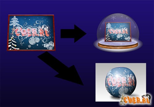 Два Новогодних забавных Экшена (Actions). Один делает из обычного изображения Шарик, а второй делает Красивый зимний шар на деревянной подставочке!