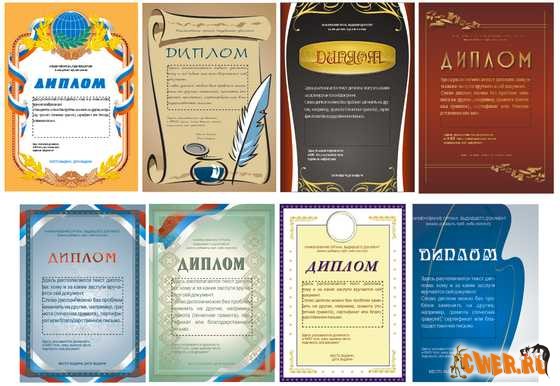 16 векторных дипломов в формате CDR, шрифт для текстов можете устанавливать самостоятельно