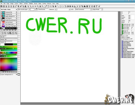 TwistedBrush - программа для художников. Она имеет большое количество самых разнообразных инструментов для рисования, от красок до мелков и карандашей. Эта программа глубоко поражает буквально с первого запуска. Интерфейсом Twisted-Brush мало похож на другие редакторы, хотя и предоставляет все необходимые возможности: работа с буфером обмена, зуминг и, конечно же, рисование. Причем рисующий инструмент только один — кисточка, зато количество (более 3000 штук!!!) и качество пресетов для рисования, а также многообразие форм и регулируемость размеров и цветовой гаммы позволяют человеку, не особо одаренному художественными талантами, буквально за пару минут изобразить то, что — возможно, более аккуратно и качественно, конечно — профессионал, работающий в другом редакторе, рисовал бы, наверное, не один час.