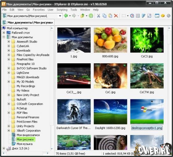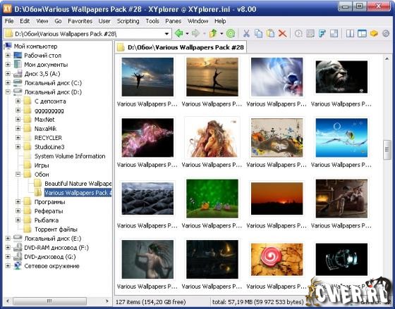 Xplorer Professional - достаточно функциональный файловый менеджер. Интерфейс программы похож на стандартный Проводник Windows, но из-за дополнительных кнопок и панелей возможности этого менеджера намного обширнее, чем у Проводника. Для работы с файлами и директориями на локальном компьютере тут имеются все необходимые опции (копирование, перемещение, удаление, поиск, фильтрация, просмотр по заданным параметрам и т.д.). Поддерживается работа с сетевыми дисками, причём, в подключённых сетевых дисках при необходимости происходит автоматическое обновление файлов. Программа может работать как с отдельно взятыми файлами, так и с файлами в пакетном режиме.