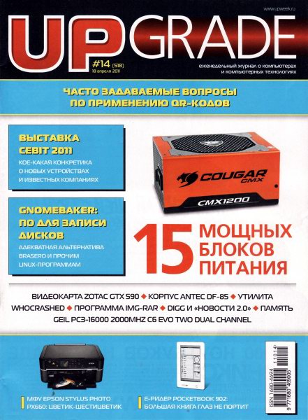 UPgrade – еженедельный журнал о компьютерах и компьютерных технологиях, стал первопроходцем на рынке массовых изданий о высоких технологиях, сегодня журнал – признанный лидер в своем медиасегменте. UPgrade – первое еженедельное издание для широкого круга читателей, которых интересует не только сам по себе апгрейд компьютера, но и все, что так или иначе связано с миром IT.