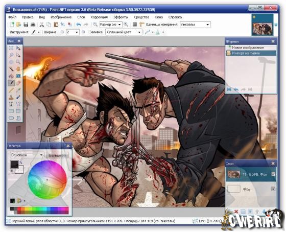 Новая версия бесплатного графического редактора, способного заменить стандартный Paint. Сразу стоит сказать, что Paint.NET разрабатывается в Вашингтонском университете (Washington State University), и эта разработка поддерживается корпорацией Microsoft. Графический редактор Paint.NET отличается продуманным интерфейсом и значительной функциональностью по сравнению со стандартным редактором Paint. Тут поддерживается работа со слоями (в том числе с прозрачными), удобная настройка панелей инструментов, удаление эффекта красных глаз (опция Red-Eye). Кроме того, программа содержит общие инструменты для работы с графикой, позволяет в удобном виде менять размер изображения, увеличивать чёткость картинки. Встроенными средствами Paint.NET на редактируемое изображение можно накладывать различные эффекты.