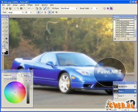 Новая версия бесплатного графического редактора, способного заменить стандартный Paint. Сразу стоит сказать, что Paint.NET разрабатывается в Вашингтонском университете (Washington State University), и эта разработка поддерживается корпорацией Microsoft. Графический редактор Paint.NET отличается продуманным интерфейсом и значительной функциональностью по сравнению со стандартным редактором Paint. Тут поддерживается работа со слоями (в том числе с прозрачными), удобная настройка панелей инструментов, удаление эффекта красных глаз (опция Red-Eye). Кроме того, программа содержит общие инструменты для работы с графикой, позволяет в удобном виде менять размер изображения, увеличивать чёткость картинки. Встроенными средствами Paint.NET на редактируемое изображение можно накладывать различные эффекты.
