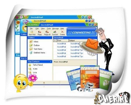IncrediMail: Очень оригинальная почтовая программа, причем главная ее особенность - не набор функций по обработке корреспонденции, а совершенно новые, не имеющиеся ни в одной из других почтовых программ, возможности по оформлению писем с помощью анимации, создания "прыгающего" текста, включения в текст графических смайликов и многого другого, включая самые разнообразные 3D-эффекты.
