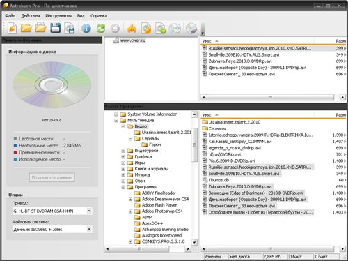 Astroburn Pro - программа для записи дисков. Astroburn поддерживает любые типы носителей - CD-R/RW, DVD-R/RW, DVD+R/RW, BD-R/RE, HD-DVD-R/RW, DVD-RAM, и Blu-Ray, а также позволяет записывать диски из образов и создавать, сохранять и записывать образы дисков. Для аудиодисков предусмотрен режим прослушивания и сортировки треков.