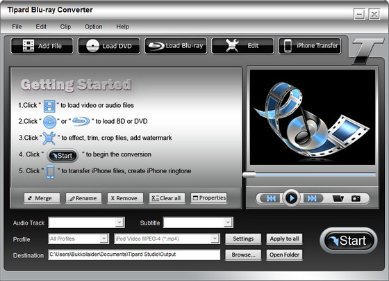 Tipard Blu-ray Converter - конвертер-граббер видео BD DVD (Blu-Ray) в другие популярные видео форматы, поддержка MPG, MPEG, MPEG2, SWF, FLV, VOB, MOD, MP4, H.264, M4V, AVI, WMV, 3GP, 3GPP, MOV , DivX, XviD, Quciktime видео, DV, MJPG, MJPEG, MPV и т.д. Программа также поддерживает High Definition видео файлы, такие как TS, M2TS, TP, HD MPEG 2, HD MEG4, WMV HD, HD MOV, H.264 HD, HD RM и т.д.Кроме того Tipard Blu-ray Converter может конвертировать и извлекать любые аудио файлы без потери качества.