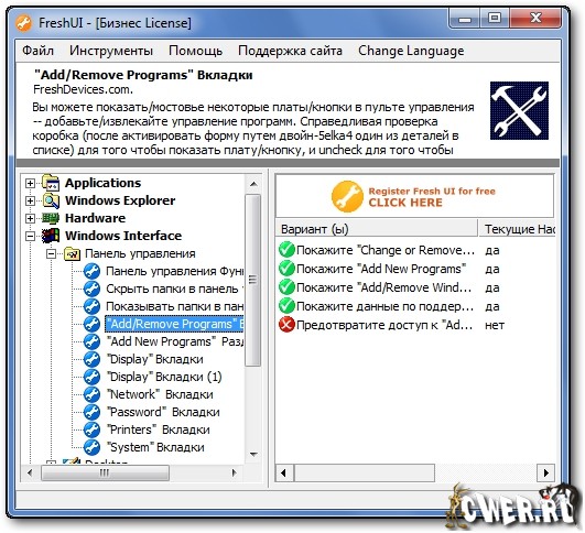 Утилита Fresh UI, при помощи которой вы получите доступ к большому числу параметров операционных систем Windows, разбитым на несколько категорий — интерфейс, система, аппаратная часть, приложения (Windows) и пользователи (среда и правила).