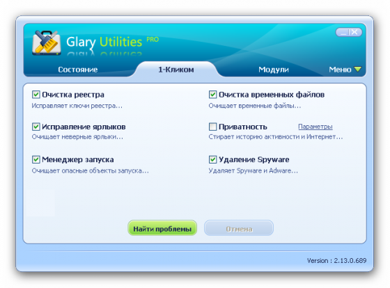 Glary Utilities – это функциональный набор системных твикеров и утилит, для тонкой настройки, повышения общего уровня производительности и защиты ПК. Данное приложение позволяет пользователю избавиться от ненужных файлов, от устаревших регистрационных записей и истории Интернет-активности (посредством установки различных плагинов, можно добиться полной совместимости данного приложения с более чем 45 различным программами).