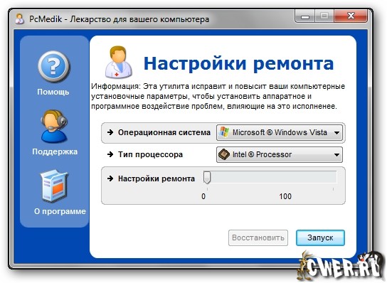PCMedik - это небольшая программа, предназначенная для настройки параметров и оптимизации работы операционных систем Windows, позволяет уменьшить количество зависаний, "падений" и т.д. Вся работа с программой осуществляется посредством простого интерфейса.