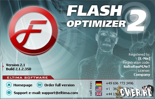 Eltima Flash Optimizer – удобное программное решение для веб-мастеров, веб-дизайнеров, Flash-профессионалов и всех кто когда-либо сталкивался с технологией Adobe Flash. Он позволяет уменьшить размер SWF файла на 60-70% благодаря алгоритмам векторов, образов, морфинга, Z-буфера, шрифтов и другой оптимизации. Flash Optimizer уменьшает размер не только какой-либо отдельной части Вашего Flash видеоролика, но и оптимизирует все его элементы (включая кривые, нулевые объекты, ZLib оптимизацию и др.).