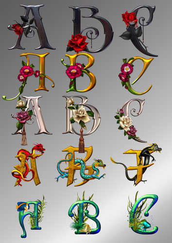 Коллекция из 40 наборов букв и заглавных буквиц в различных графических форматах (JPG, PNG, PSD, GIF) + бонус: бланки для поздравительных новогодних писем