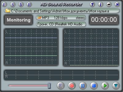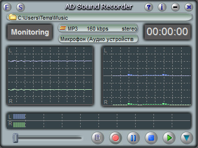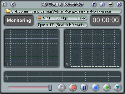 AD Sound Recorder - утилита для записи аудио. Поддерживает звук форматов WAV, MP3 и WMA. Позволяет записать звук с микрофона, потоковое аудио из интернета, или музыку, которая проигрывается Winamp, Windows Media Player, Quick Time, Real Player, Flash, games, и т.д. без потери качества. Предусмотрена возможность настроить громкость записи, приостановить или возобновить запись.