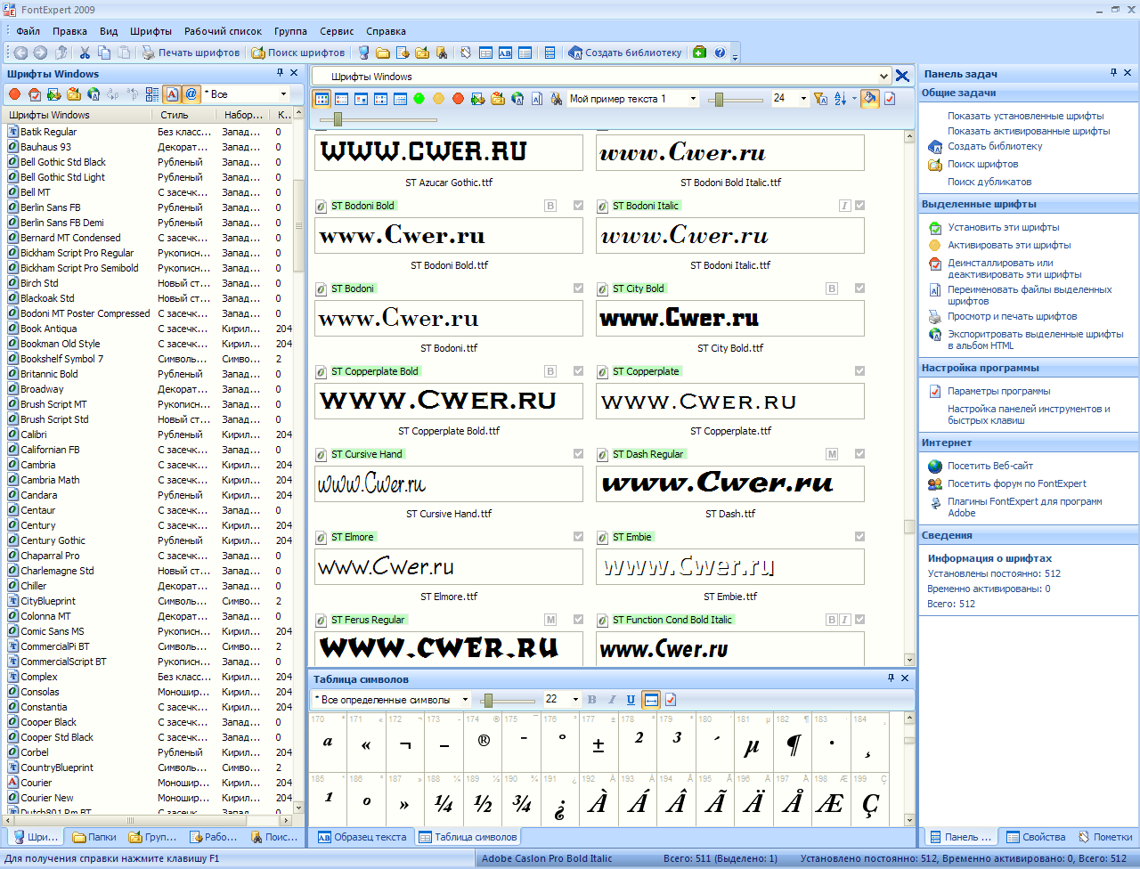 FontExpert - пожалуй, одна из лучших программ своего класса, для просмотра и установки шрифтов, а также проверки системы на наличие проблем со шрифтами.