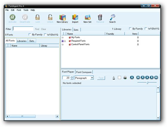 FontAgent Pro — полноценный менеджер шрифтов для организации шрифтов в библиотеки. Использование FontAgent Pro позволит вам сохранить системные ресурсы, увеличить производительность системы, упростит шрифтовые меню и гарантирует целостность всех ваших шрифтов.