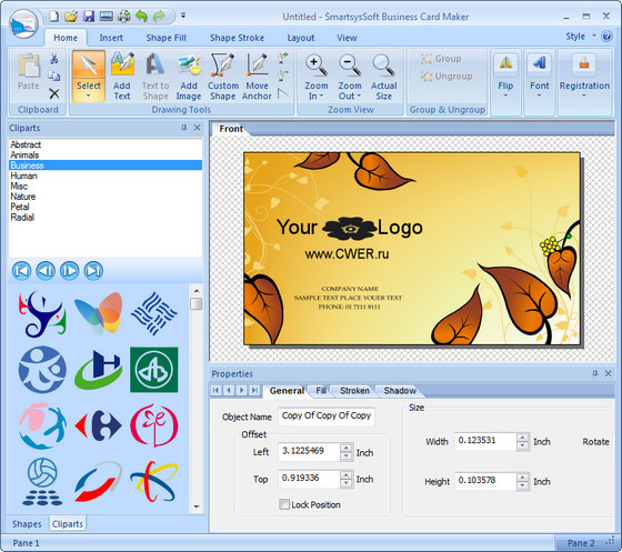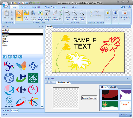 SmartsysSoft Business Card Maker программа для легкого и быстрого изготовления визиток. Вся работа проходит при помощи "мастера", упрощающего процесс создания визитки. Встроенные в программу инструменты позволяют создать профессионально выполненные визитки самых разнообразных размеров и стилей оформления, поддерживается совместная работа со сканером, для упрощения изготовления визиток работникам предприятия допускается создание внутренней базы данных.