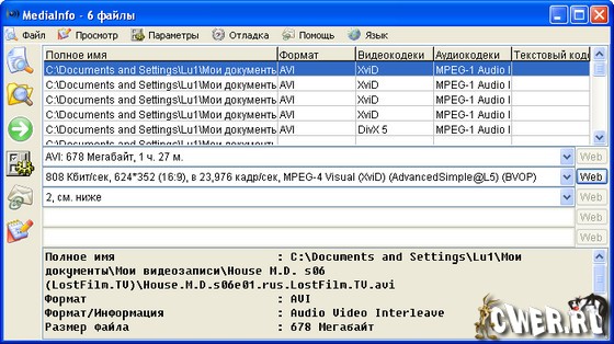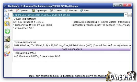 Вышла новая версия бесплатной программы, которая предоставляет подробную информацию об аудио и видео файлах. Программа показывает, каким кодеком сжато видео, с каким битрейтом, какое в нем соотношение сторон и количество кадров в секунду. Для аудиофайла MediaInfo показывает используемый кодек, битрейт, язык, количество каналов, частоту выборки и т.д. Показав сведения о файле, программа тут же посоветует, где можно скачать недостающий кодек или проигрыватель.