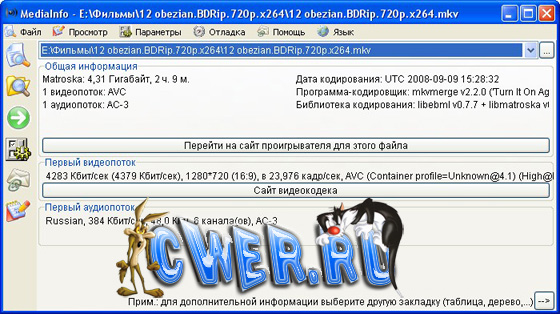 Вышла новая версия бесплатной программы, которая предоставляет подробную информацию об аудио и видео файлах. Программа показывает, каким кодеком сжато видео, с каким битрейтом, какое в нем соотношение сторон и количество кадров в секунду. Для аудиофайла MediaInfo показывает используемый кодек, битрейт, язык, количество каналов, частоту выборки и т.д. Показав сведения о файле, программа тут же посоветует, где можно скачать недостающий кодек или проигрыватель.