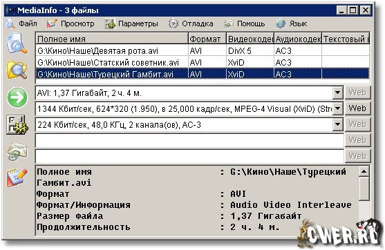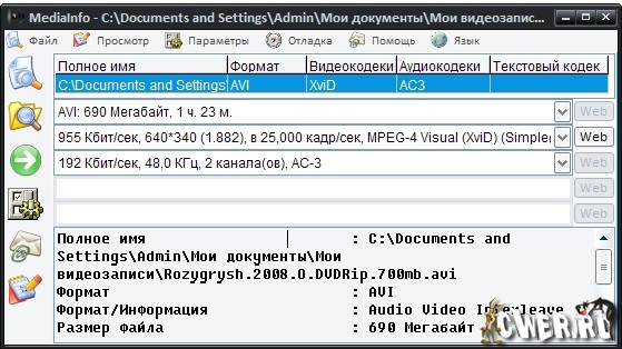 MediaInfo - программа, которая предоставляет подробную информацию об аудио и видео файлах. MediaInfo показывает, каким кодеком сжато видео, с каким битрейтом, какое в нем соотношение сторон и количество кадров в секунду. Для аудиофайла MediaInfo показывает используемый кодек, битрейт, язык, количество каналов, частоту выборки и т.д. Показав сведения о файле, программа тут же посоветует, где можно скачать недостающий кодек или проигрыватель.