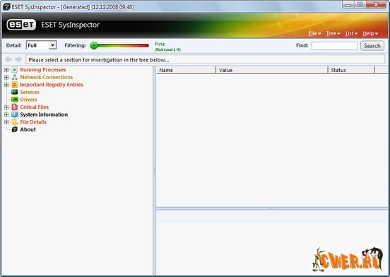 ESET SysInspector 1.1.2.0 проводит углубленный анализ вашего PC, обнаруживает запущенные приложения, а так же и записи в системного реестра, сетевые подключения и проводит сбор других ваших данных для решения пробем системы. Использование ESET SysInspector является совершенно безопасным, программа только собирает информацию, не внося никаких изменений в файлы и данные.