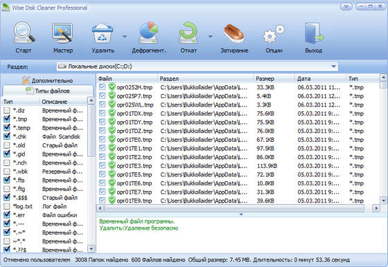 Wise Disk Cleaner - программа для быстрого и легкого освобождения свободного места на жестком диске. Утилита удаляет ненужные мусорные файлы, которые не используются программами, установленными в вашей системе. Программа может определять более 50 типов мусорных файлов, и вы можете сами добавлять любые типы файлов, которые считаете мусором. После того, как программа просканирует систему на наличие мусорных файлов, можно индивидуально посмотреть каждый файл и подробную информацию о нем, после чего решить, стоит ли его удалять. Имеется также возможность удалять все ненужные файлы в автоматическом режиме. Программа имеет приятный пользовательский интерфейс.