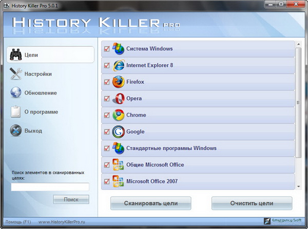 History Killer Pro - комплексное программное обеспечение для решения всех проблем связанных с удалением мусора с компьютера и защиты информации. Программа обеспечит вашу приватность как в интернете так и вне ее, безвозвратно стирая всю информацию которая может подвергнуть риску вашу конфиденциальность.