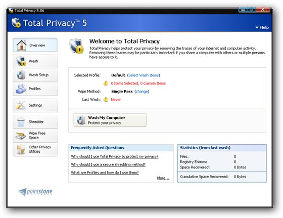 Total Privacy – надежное решение для удаления информации и защиты от онлайновых и оффлайновых угроз вашей безопасности. Программа использует самые надежные современные методы удаления информации чтобы ваш компьютер оставался именно вашим – личным. Также это безопасный и простой в использовании инструмент защиты Windows, который надежно удаляет историю посещенных сайтов, действия операционной системы и историю запущенных программ, которая хранится на вашем компьютере. Программа также убедится в том, чтобы предварительно удаленные файлы было невозможно восстановить. Поддерживает все браузеры и более 450 сторонних приложений.