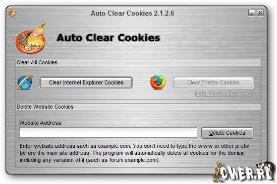 Auto Clear Cookies является мощным средством, которое позволит Вам стереть cookies с одного веб-сайта или доменного имени, или очистить все cookies из браузера Internet Explorer и Mozilla Firefox.