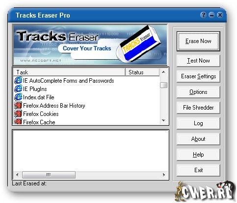 Tracks Eraser Pro - утилита для удаления ненужной информации с вашего ПК. Она встраивается в Internet Explorer и проводит очистку, интернет файлов таких как ( куки, URL, кэш, переходы и т.д. ).