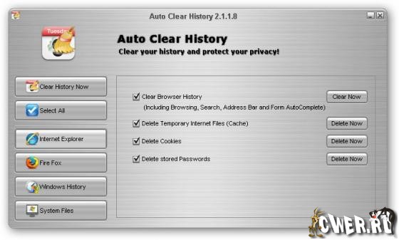 Основное предназначение программы - удаление следов пребывания пользователя за компьютером. Программа эффективно очистит cookies, кеш браузеров, введённые адреса и ссылки, а также очистит историю работы пользователя с более чем сотней самых популярных программ - офисные пакеты, архиваторы, проигрыватели и прочее.