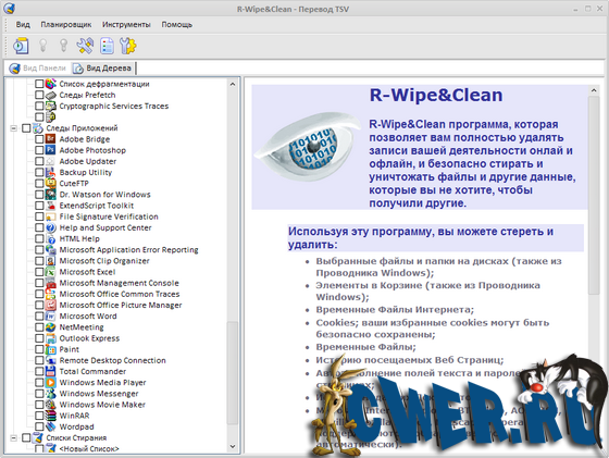 R-Wipe & Clean - эффективная утилита очистки дискового пространства и сохранения конфиденциальности информации. Это приложение полностью удалит временные интернет файлы, журнал посещенных страниц, кукисы, автозаполняемые формы и пароли, файлы подкачки, список недавно использовавшихся документов, список часто используемых компонентов, хранящихся в системном реестре, временные файлы и многое другое. Сделает невозможным восстановление конфиденциальной информации о вашей сетевой или локальной активности. Также программа удалит оставшуюся на компьютере информацию о работе более чем 200 приложений. Утратившие необходимость файлы и папки могут быть объединены в списки и удалены за один раз. Программой поддерживаются файловые системы FAT и NTFS. Различные задачи программы могут быть объединены в одну или более процедур и выполнены как сразу, так и в определенное время или при определенном событии в автоматическом режиме.