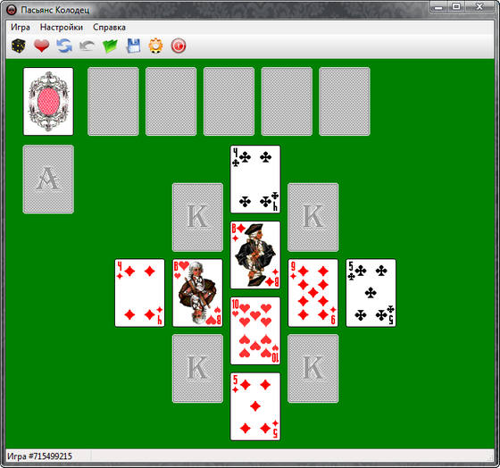 Компьютерная реализация старинного классического гранд-пасьянса, известного также под названием "Гробница Наполеона". Требует исключительного внимания и умения сосредоточиться. Его можно отнести скорее к вероятностному, нежели к логическому типу пасьянсов. Несмотря на кажущуюся сложность, пасьянс может доставить удовольствие не только тем, кто любит раскладывать сложные и головоломные пасьянсы, но и тем, кто не слишком склонен перегружать свой мозг логическими построениями.