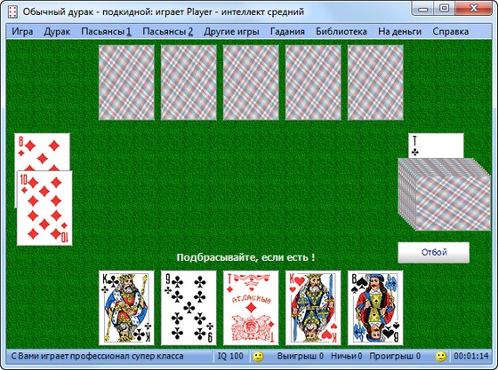 "Карточная игра в дурака" - это уникальная коллекция (сборник) карточных игр для взрослых и детей, которая содержит в себе все самые популярные семейные, народные, азартные, карточные игры, пасьянсы, гадания, фокусы. Создана для игры на пк в операционной системе Windows Me/Nt/2000/XP/Vista/7 на основе многолетнего опыта игры в карты.