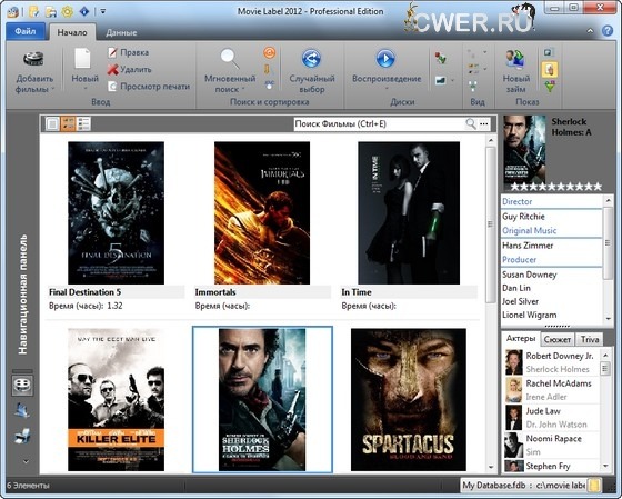 Программа предназначена для поиска информации по фильмам на различных онлайн ресурсах, от самой известной базы данных IMDb и до крупнейших магазинов вроде Amazon. Программа загружает всю информацию о фильме, начиная с актеров и краткого изложения сюжета, и заканчивая перечнем аудиодорожек/субтитров/количеством слоев у DVD, и даже "вытянет" обложки дисков. После этого вам остается лишь заполнить поля вроде "фильм отсмотрен — да/нет" и "моя личная оценка". Естественно, если именно ваш диск программе найти не удалось (скажем, в вашем распоряжении находится лицензионное российское издание — с русским дубляжем, другим подбором бонусов и т. д.), вы совершенно спокойно можете отредактировать любую загруженную из Интернета информацию.