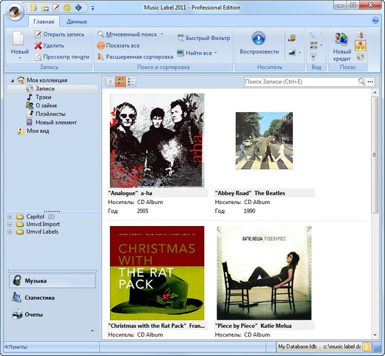 Music Collector - программа для каталогизации ваших музыкальных файлов. Работает очень просто, вставляете музыкальный CD, программа сама соединяется с базой CDDB и находит по коду на CD исполнителя и добавляет диск в базу данных, также есть возможность загрузки обложек. После недолгих операций вы получаете полную информацию о вашем CD с максимально точными данными!