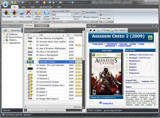 eXtreme Games Manager - это менеджжер коллекций игр. Программа сможет загрузить информацию о играх из многих специализированных стайтов, для этого Вам понадобиться только указать название игры либо указать отсканированный штрих код ISBN.