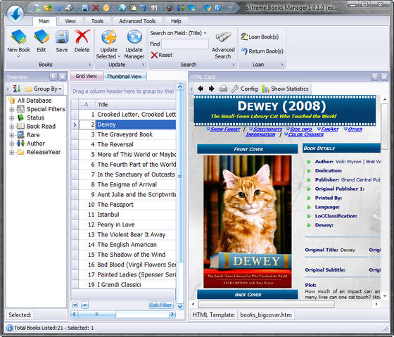 eXtreme Books Manager возможно самый лучший менеджер коллекций книг. Программа сможет импортировать информацию о книгах из многих специализированных сайтов, для этого Вам понадобиться только указать название книги либо указать отсканированный штрих код ISBN.