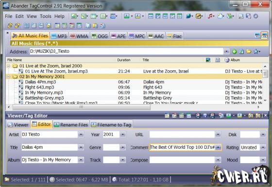 TagControl - легкий в использовании менеджер музыкальной коллекции и редактор тегов музыкальных файлов в различных форматах. Вы сможете редактировать теги как вручную, так и автоматически, скачивая информацию с баз данных Amazon и FreeBD. Программа позволяет с легкостью организовывать музыкальную коллекцию и полностью заполнять информацию в тегах, предоставляя для этого все необходимые инструменты.