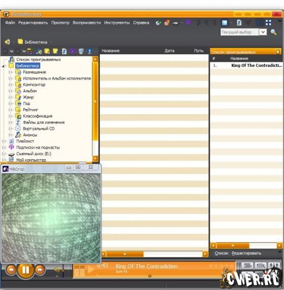 MediaMonkey - позволяет упорядочить музыкальную коллекцию, находящуюся на жестком диске, CD и в локальной сети - быстро отредактировать теги (вручную или автоматически с помощью данных из базы freedb.org), найти неполные или повторяющиеся файлы, переконвертировать файлы в другие форматы, записать музыку с CD (в форматах OGG, MP3 или WMA) или на CD, а также загрузить в mp3-плеер. Поддерживается работа с CD и файлами OGG, WMA, MPC, FLAC, APE, WAV и MP3. В MediaMonkey встроен проигрыватель с удобным интерфейсом и поддержкой модулей Winamp. Может интегрироваться с Nero для записи дисков.