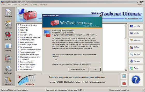 WinTools.net Ultimate – набор инструментов для оптимизации операционной системы Windows.