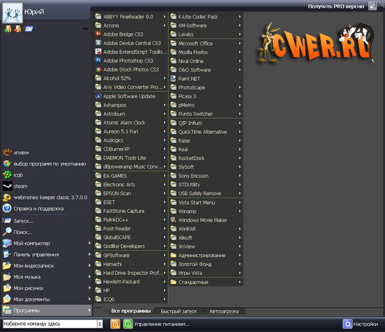 Vista Start Menu - удобная альтернатива меню "Пуск" для Windows XP и Windows Vista. Программа использует ваши когнитивные способности (визуальную память, рефлексы), но при этом она понятна для начинающих и эффективна в руках опытных пользователей. Попробуйте заменить меню "Пуск" прямо сейчас, это безопасно, так как Vista Start Menu не изменяет систему и проста в установке/удалении. Vista Start Menu продумана до мелочей, и сделает именно то что вам нужно, с легкостью и удобством. Vista Start Menu разработана специально для быстрого доступа к любой информации с помощью клавиатуры или мышки.Включите уникальную функцию «запуск в один клик» и настройте меню на свой вкус, в этой PRO версии. Теперь у вас есть выбор, надеюсь, он вам понравится...