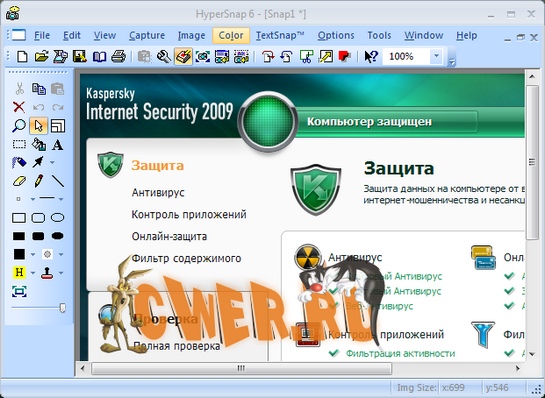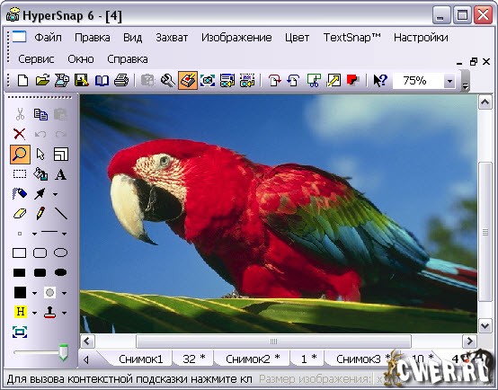 HyperSnap объединяет в себе первоклассную программу для “снятия” изображений с экрана монитора с современными инструментами редактирования полученных снимков. Необходим практически всем от домашнего пользователя, работника офиса, геймера до рекламных агентов или разработчиков обучающих программ и презентаций. Управляется легко и просто горячими клавишами или голосом. Захватывает: целиком или часть окна с рамкой или без рамки, кадры из фильмов или игр DirectX / Direct3D или 3Dfx Voodoo или использующих технологию DirectInput (Destruction, Formula 1 2000, PBA Tour Bowling и др.). Дополнительные возможности: захват текста и таблиц Excel MS; преодоление трудных к захвату моментов в DirectX ™ и Glide™; непрямоугольный захват; захват длинных страниц скроллом; конвертация и сохранение в более чем 20ти графических форматах и многое, многое другое.