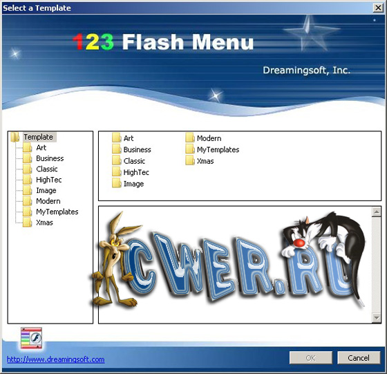 123 Flash Menu - мощный инструмент для создания внушительного и профессионального меню за 3 шага. Сотни предсозданных шаблонов помогают Вам осуществлять персонифицированное меню. Это дает вам динамические эффекты подобно анимации, звукам, градиенту и прозрачности без навыков программирования. Программа предлагает многоуровневое меню Flash с полностью настраиваемым текстом, шрифтом, связью, фоном, стилем границы, теневым стилем и прочими эффектами. Содержит в себе более 100 готовых шаблонов.