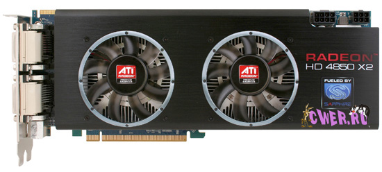 Несмотря на то, что мировая премьера двухъядерного графического адаптера ATI Radeon HD 4850 X2 состоялась ещё в августе сего года одновременно с релизом более производительной модели ATI Radeon HD 4870 X2, фотографий готовых продуктов на базе данного решения в исполнении партнёров AMD до сих пор мы с вами ещё не видели. Теперь же на официальном сайте компании Sapphire Technology появились изображения видеокарты Sapphire Radeon HD 4850 X2 2GB GDDR3, значительно отличающейся по дизайну от эталонного образца. Более того, благодаря стараниям сотрудников сетевого ресурса Hardspell у нас появилась возможность подробнее познакомить вас с применённой в данной модели системой охлаждения.