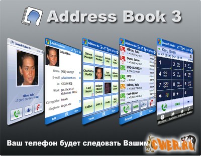 Address Book - Мощный менеджер контактов и телефона с фото и системой поиска позволяющий найти контакт по информации из любых полей. Встроенный T9 позволит быстро найти контакт и набрать номер. Точное определение телефонов и фото звонящего. Вы можете настроить блокировку и персонифицированные мелодии звонящего. Address Book идеально приспособлен для обслуживания одной рукой без использования стилуса, интегрирован с сервисами SMS и календарем.