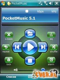 PocketMusic Player - продвинутый аудио-плеер с 10-полосным эквалайзером, проигрывает музыку в форматах MP3, Ogg Vorbis и WMA. Есть вариант интерфейса с крупными кнопками, ориентированный на работу в горизонтальном положении экрана. На экране Today можно разместить «органы управления» плеером, установив соответствующий плагин к «рабочему столу». Улучшено качество работы эквалайзера (он оптимизирован для работы на процессорах XScale). Также программа PocketMusic Player «научилась» запоминать, на каком месте было остановлено воспроизведение в прошлый раз. А еще есть возможность автоматического сканирования всех папок на наличие аудио-файлов.